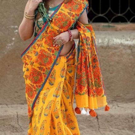 হাফ সিল্ক ব্লক প্রিন্ট শাড়ী