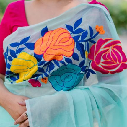 ফুল বডিতে গোল্ডেন সুতা এবং জরি সুতার কাজ করা