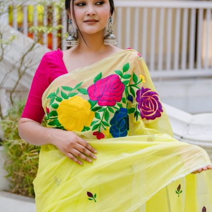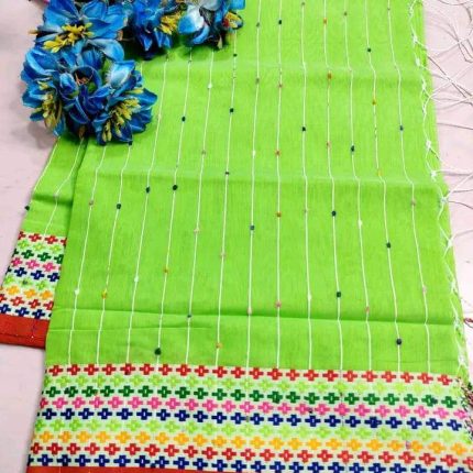 Chumki Sharee প্রোডাক্ট টাইপ: চুমকি শাড়ি ম্যাটেরিয়াল: হাফ সিল্ক দৈর্ঘ্য: ১২ হাতব্লাউস পিস ছাড়া ডিজাইন: চুমকি ওয়ার্ক ব্লাউজ পিস সাথে